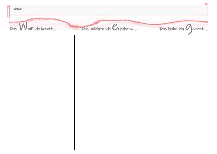Die WORD-Datei bietet eine Tabelle, in die VOR der Wissensaneignung das Vorwissen und die Zielsetzung eruiert werden.